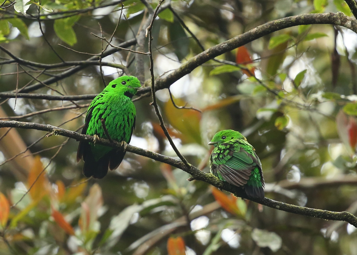 Fasaner som Bulwer´s Pheasant, Bornean Peacock Pheasant och Bornean Crested Fireback är några av Borneos läckraste hönsfåglar och dem har vi chans att se på resan, dessutom Red-breasted- och Crimson-headed Partridge. Alla dessa har vi bra chanser på från gömslen. Broadbills av flera arter, varav Whitehead´s Broadbill är den mest säregna. Även Red and Yellow-, Banded- och Black and red Broadbill är riktigt tjusiga, färgstarka fåglar. Trogoner är även de färgstarka, karismatiska fåglar i regnskogen och här finns ett flertal . Borneo har också en mångfald av kungsfiskare, bulbuler, Spiderhunters, Babblers, fnittertrastar. Tittar man upp i himlen kan man se flera arter rovfåglar, t.ex. White-bellied Sea Eagle, Lesser Fish Eagle, Mountain- och Crested Serpent Eagle, m.fl. likaså seglare i flertal och inte minst de gracila Tree Swifts av 2 arter.