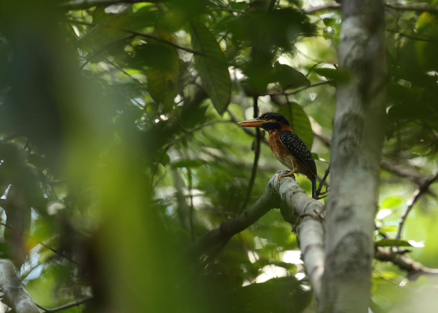 Dag 13. Heldagsskådning vid Danum Valley Field centre. Målarter: Great Argus, Helmeted Hornbill, Great Slaty Woodpecker, Striped Wren-babbler, Sunda Blue Flycatcher, Red-bearded Bee-eater, Maroon-breasted Philentoma, Brown Wood Owl, etc.  Ikväll gör vi nightdrive med safaritruck efter middagen för att leta grodmunnar, ugglor och nattaktiva däggdjur. Natt på Danum Valley Field centre.